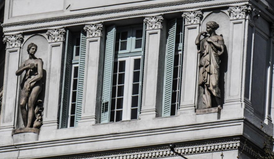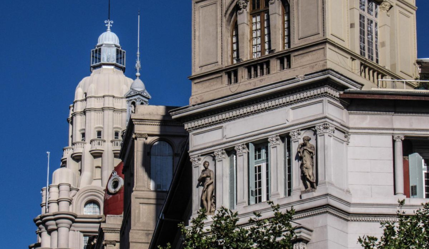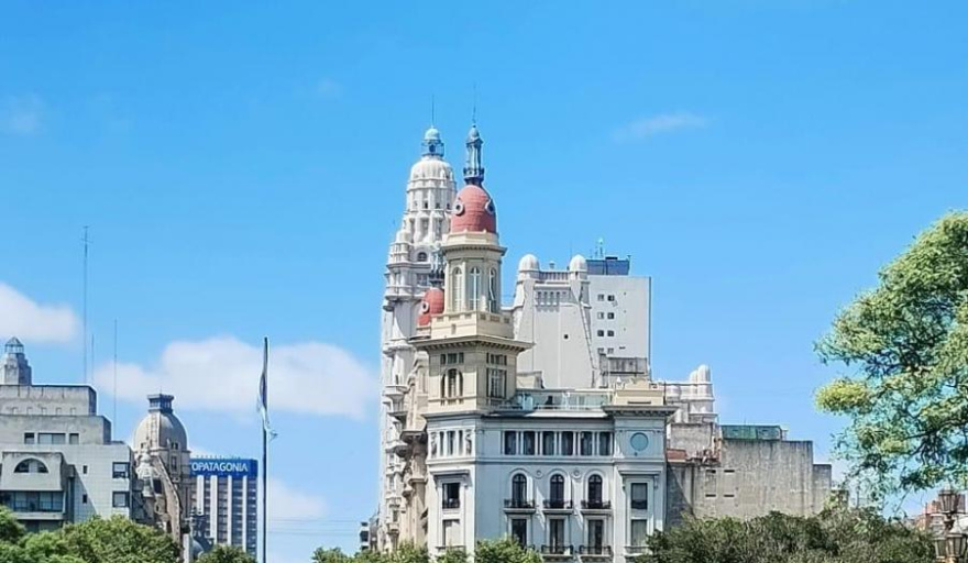 Con su estilo neorrenacentista ecléctico, su fachada perfectamente simétrica y sus dos cúpulas gemelas de hierro y zinc rojizo, el edificio no solo domina la avenida: dialoga con el Congreso, con la Confitería del Molino y con el espíritu mismo de Buenos Aires.